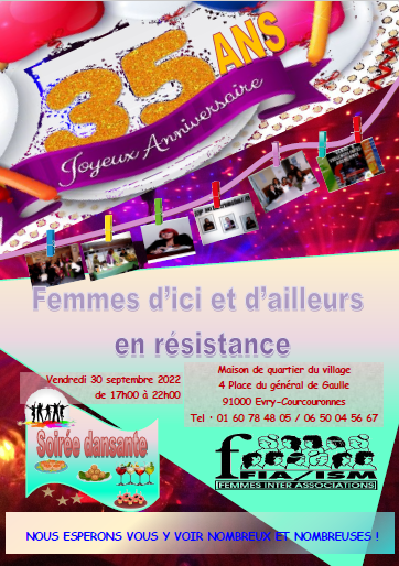 Des animations ludiques et pédagogiques, des témoignages des acteurs et actrices de nombreuses associations du territoire et des alentours, des témoignages des habitants, des institutions (Maire d’Evry-Courcouronnes, des élus de la ville, la déléguée du Préfet de l’Essonne, etc…. ), une pièce de théâtre d’une troupe amatrice issue des quartiers de Villeneuve-St-Georges, un buffet offert par la Mairie d’Evry-Courcouronnes, et une soirée dansante.