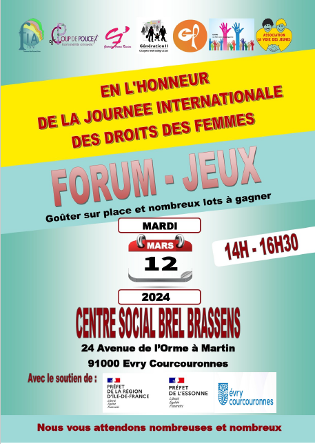 A l'occasion de la journée internationale des droits des femmes, nous vous convions à assister à notre événement collectif qui se tiendra le mardi 12 mars au centre social Brel Brassens à partir de 14h00.
